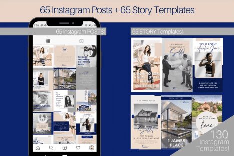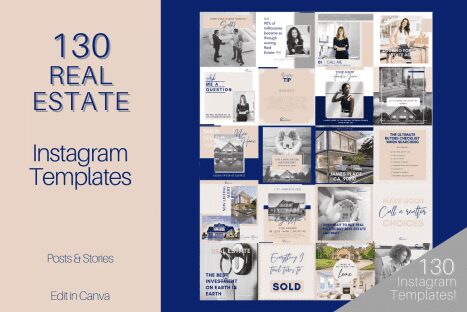 Editable Canva Template Pack with 130 Instagram Posts & Stories. These Real Estate IG